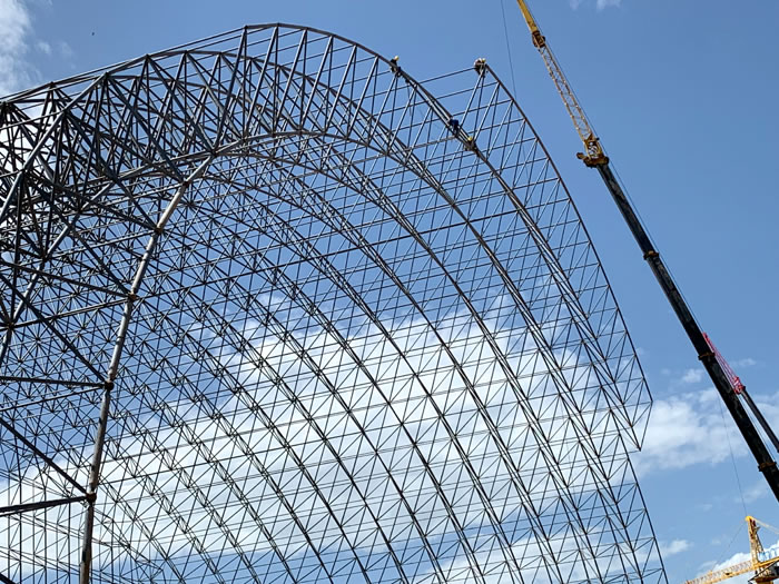 (2)网架加工前应对现场尺寸进行复测,确认无误后方可进行加工、安装;网架制作、运输、安装应遵守《空间网格结构技术规程》JGJ7-2010、《钢网架包头螺栓球节点》JG/T 10-2009、《钢网架包头螺栓球节点用高强度螺栓》 GB/T 16939-2016、《包头钢结构包头工程包头施工规范》 GB50755-2012、《包头钢结构包头工程施工质量验收标准》 GB50205-2020。